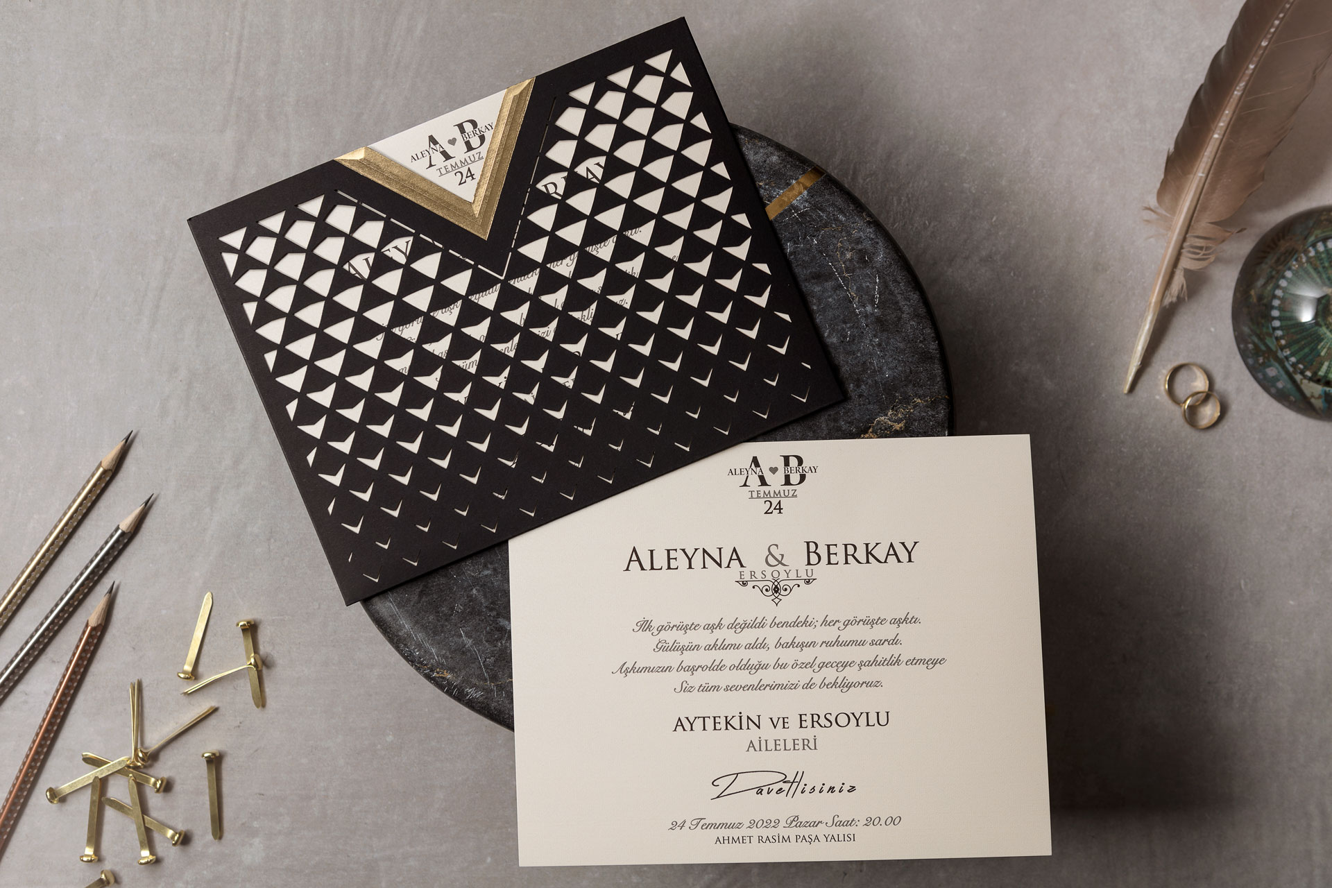 Orijinal fiyat: ₺5.500,00.₺3.999,00Şu andaki fiyat: ₺3.999,00.Lüks Düğün Davetiyesi 8345